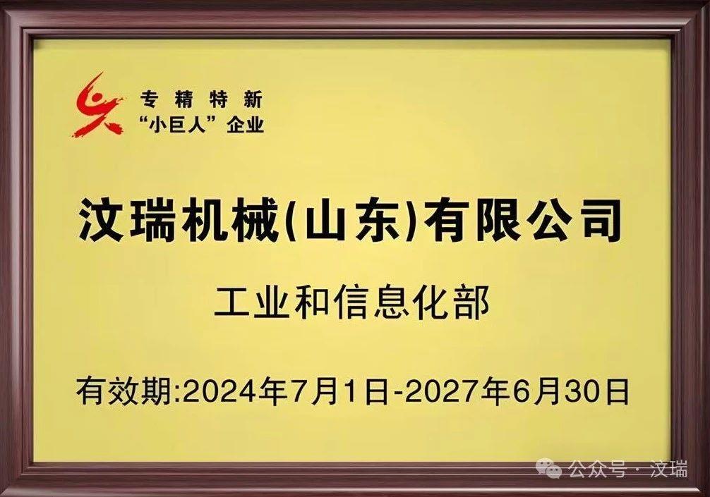 号”文件公布第六批专精特新”小巨人“企业获批名单,汶瑞机械(山东)有限公司(简称“汶瑞机械”)成功入选获批。这是公司继年获得省级“制造业单项冠军”、省级“专精特新中小企业”,以及潍坊市“高成长倍增产值企业”后,进一步升级获批的一项国家荣誉称号。这一殊荣获得标志着公司在专业化、精细化、特色化、新颖化等方面取得代表性成就,在行业绿色化与数智化转型中发挥了重要作用。