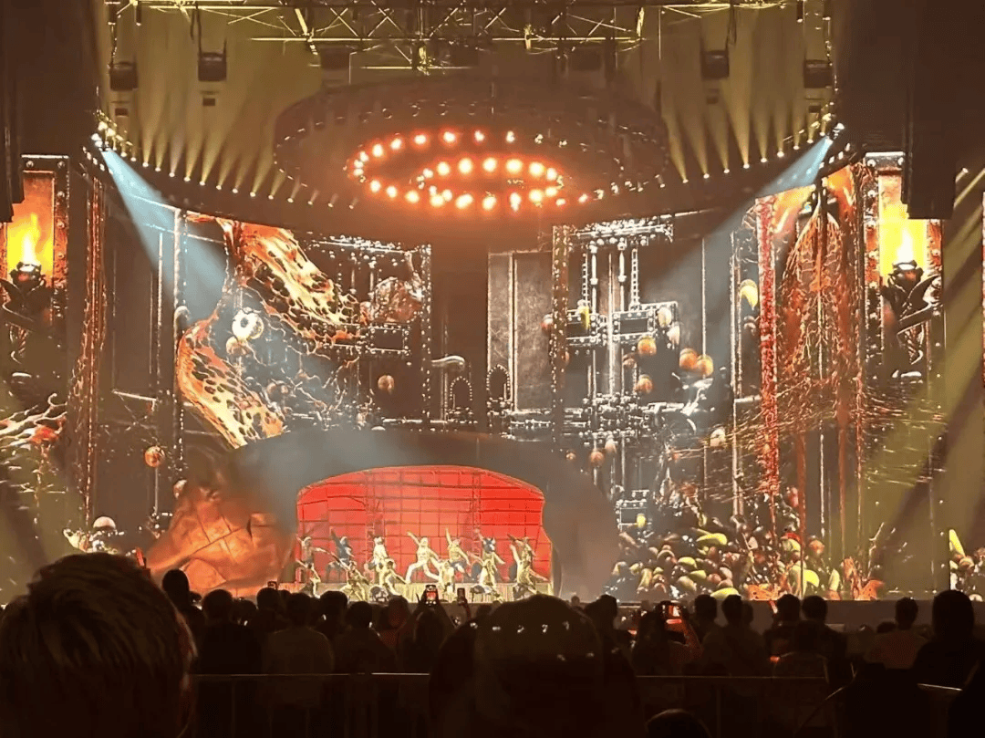 被骂得最狠的30米机械蛇,底子不是什么“吸运道具”——整场演唱会的舞台灵感源自15世纪荷兰名画《乐土》。