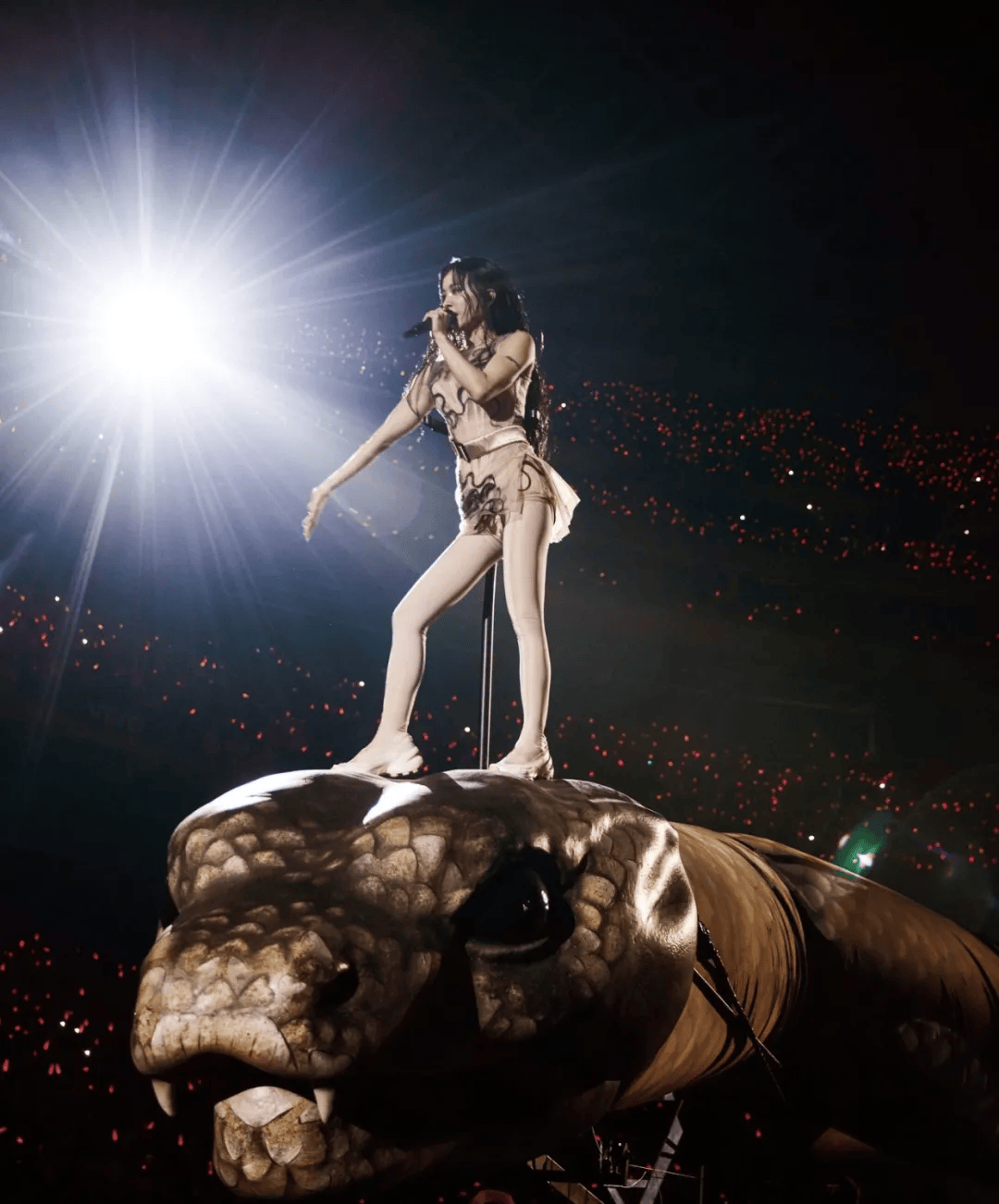 2026年《PLEASURE》巡回演唱会刚一开唱,便正在场掀起轩然大波——30米机械蛇绕场巡逛、金色公牛伫立舞台,再搭配暗色调的灯光空气,极具视觉冲击力的设想霎时激发热议。博从“斯利亚”以至声称,而是“吸收正在场合有人气运”的物件。