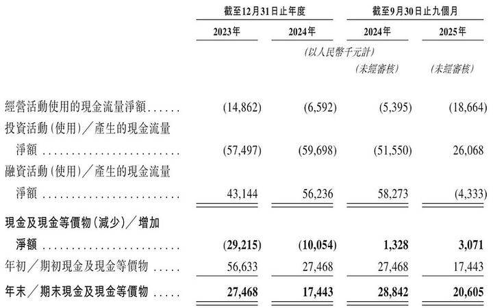 2025年前三季度,公司正在账面盈利的同时,运营勾当现金流净流出高达1866。4万元,且期末现金及等价物仅余2060。5万元。